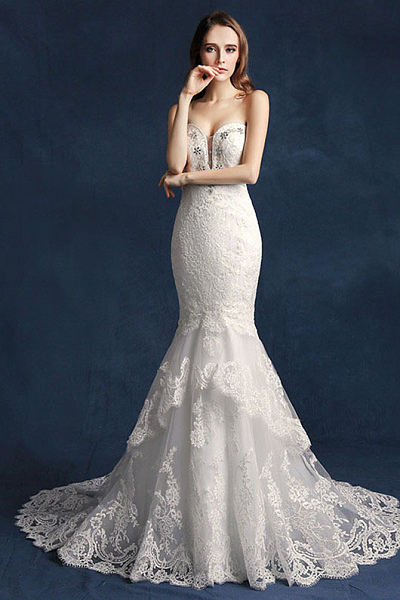 Cute Trumpet/Mermaid Long Sleeves Sweetheart Lace Appliques Wedding Dresses (OFSL2764)