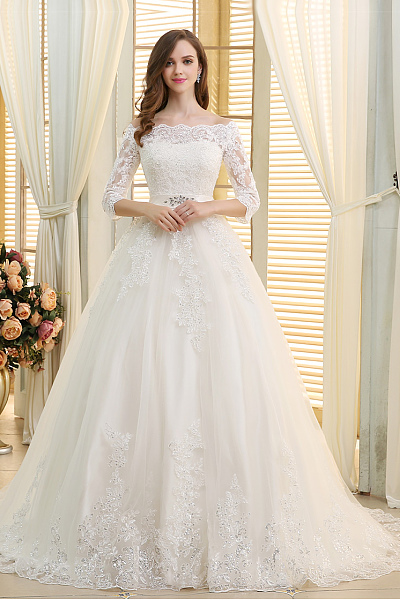 Eye-catching Ball Gown Off-the-shoulder 3/4 Sleeves Lace-up Wedding Dresses (ICWK6293)
